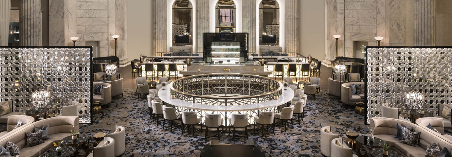 Just steps from City Hall, The Ritz-Carlton, Philadelphia is located in the former Girard Trust Bank and Girard Trust Building. Architect Frank Furness designed the bank building, modeling it after the Pantheon in Rome. The hotel is easily identified by its pillars and masonry dome. The main rotunda building, which was once the lobby of the former bank, is now a multipurpose hotel lobby that includes the registration desk, Aqimero Restaurant and lounge, concierge, and function space.