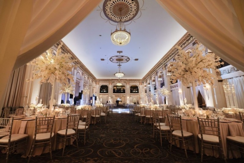 European ambiance, a balcony area for cocktails and sixty-foot ceilings embellished by crystal chandeliers surround this Historically Certified venue.