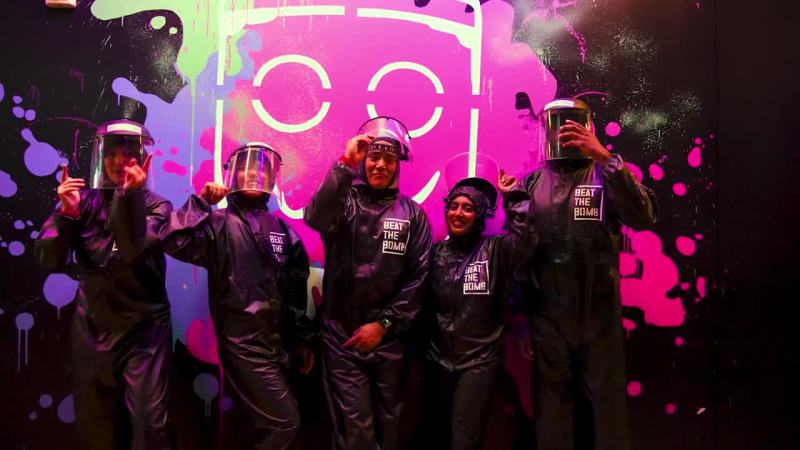 Choose from our 1-hour Bomb Missions, where teams of 4 to 6 suit up in hazmat gear, dodge lasers, and crack codes to disarm a giant Paint, Foam, and Slime Bomb, or else…#GETBLASTED! Or rent an immersive Game Bay where you can enjoy drinks and eats from The Bomb Bar while playing from a library of original Beat The Bomb games.