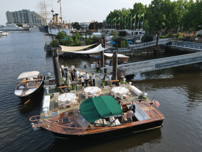Philadelphia’s riverside venue for intimate events of up to 80 guests. Nestled next to the Spruce Street Harbor Park, this oasis is where the urban landscape meets the natural habitat. During your 2.5 hour rental, our classic wood boat ARGONAUT will provide rotating boat rides for guests, in groups of six.